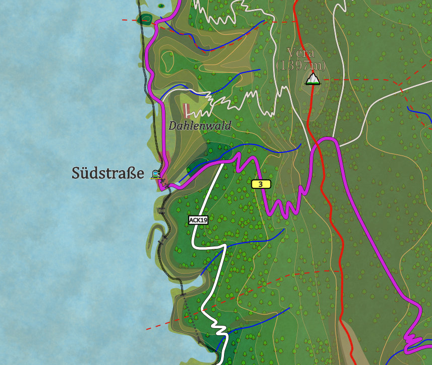 Ch.: B3 (SO: Porta 31km, N: Elifa 12km); Ack19 (S: Endstation), Straße nach Dahlenwald