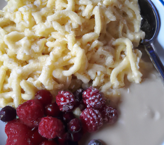 Wuburger Käsespätzle und Bergbeeren-Dessert auf einem Teller – so liebt man es in Wuburg!