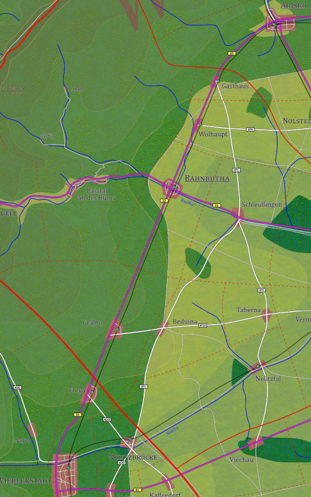 Gralno (79,7km), ein Dorf im Landkreis Bahnbutha, Buthanien, verbindet traditionellen Charme mit moderner Wirtschaft. Mit historischem Marktplatz, der Kirche St. Georg, dem Dorfkrug „Zum Alten Eichenfass“, und versteckten Wochenendhütten im Wald, bietet Gralno eine idyllische Atmosphäre. Die ButhaTech Windkraft AG symbolisiert den Fortschritt der erneuerbaren Energien in der Region.