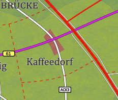 Ch.: B61 (W: Melzig 5km, O: Viechau 7km); Ack3 (N: Nolitzbrücke, S: Kaf)