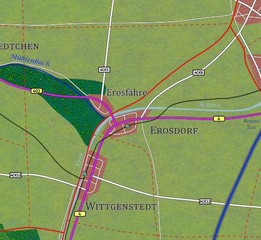 Ch.: B401 (W: Bergstedtchen 8km, O: Erosdorf 1km), Ack3 (N: Ruhedorf)