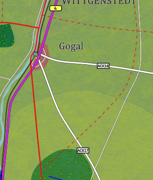 Ch.: B4 (N: Wittgenstedt 5km, S: Breitbach 8km); Ack16 (O: Nisa); Ack17 (SO: Forat)