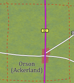 Ch.: B32 (N: Plötzau 7km, S: Gomol 6km); Ack14 (W: Nisa, O: Ata); Ack15 (NO: Ackeromünde)