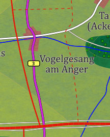 Ch.: B3 (N: Namis 3km, S: Alma 13km); Ack17 (W: Antras, O: Tarsus); Feldweg nach Angfurt