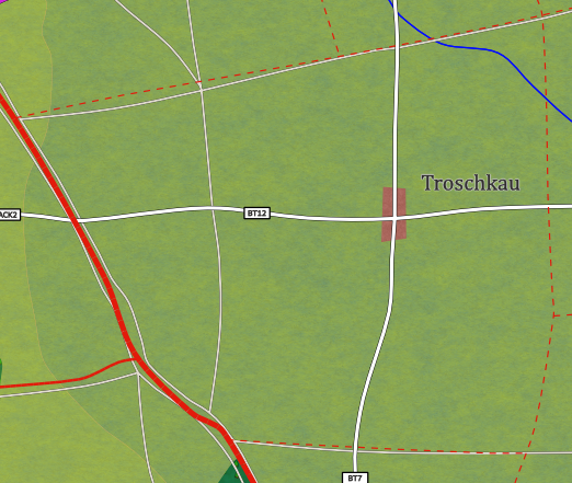 Ch.: BT7 (S: Iskos, N: Malitz); BT12 (W: Kaf, O: Wappnitz); Feldweg nach Viechau