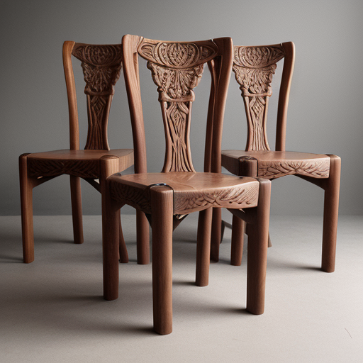 - Holzstühle mit handgefertigten Schnitzereien: Diese Stühle sind ein Meisterwerk der Schnitzkunst. Die filigranen Schnitzereien auf den Rückenlehnen und Beinen der Stühle verleihen ihnen einen einzigartigen und kunstvollen Charme.