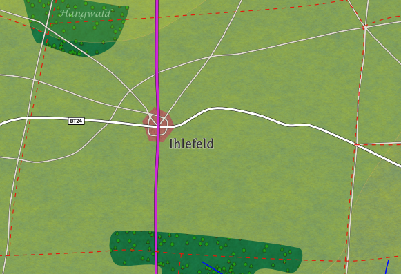 Ch.: B35 (S: Kurzau 11km, N: Hammerdorf 8km); BT24 (W: Ynames, O: Meinhaus); Feldwege nach Butterfeld, Joketa, Lorma