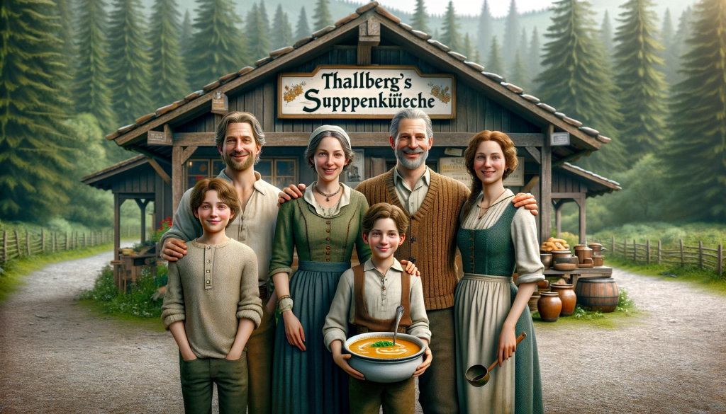 Von Ende März bis Oktober erwacht die Burg zu neuem Leben, wenn die vier dauerhaften Bewohner, die Familie Thalberg, bestehend aus Johann und Marta sowie ihren beiden Kindern, Peter und Anna, eine Suppenküche neben der Burg betreiben. Sie servieren traditionelle Buthanische Suppen und Eintöpfe, die nach alten Rezepten zubereitet werden. Ihre gemütliche Einrichtung im Schatten der Burg bietet den Besuchern nicht nur eine wärmende Mahlzeit, sondern auch einen Einblick in die Gastfreundschaft der Region. Johann Thalberg, der Patriarch, ist zugleich der Hüter der Burg und leidenschaftlicher Historiker. Marta ist für die köstlichen Suppen bekannt, die sie mit Zutaten aus dem eigenen Garten und dem nahegelegenen Wald zubereitet. Peter und Anna helfen nicht nur in der Küche, sondern führen auch Besucher durch das Museum, wobei sie Geschichten und Legenden rund um die Burg Olympius zum Besten geben.
