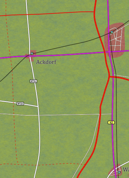 Die Hauptstraße von Ackdorf, die Dorfallee, ist eine breite, von alten Eichen gesäumte Straße, die das Herz des Dorfes bildet. Entlang dieser Straße befinden sich die meisten Häuser und Einrichtungen des Dorfes, darunter das Rathaus und das Feuerwehrhaus.