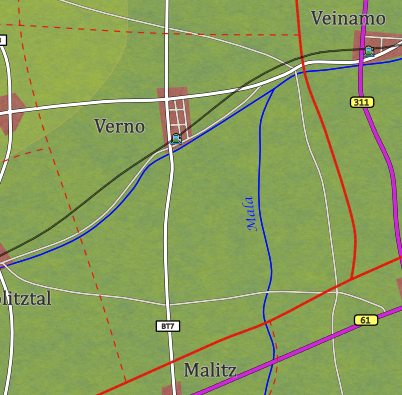 Ch.: BT7 (S: Malitz, B: Buthawasser); BT10 (W: Taberna, O: Veinamo); Nolitztal-Uferweg nach Nolitztal; Feldwege nach Schleußingen, Altai