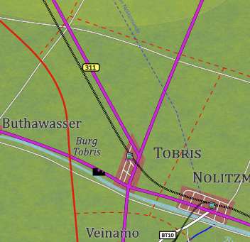 Ch.: B31 (W: Buthawasser 6km, O: Nolitzmünde 4km); B311 (S: Veinamo 3km, NW: Nolstedt 11km); B312 (N: Kandis 10,5km)