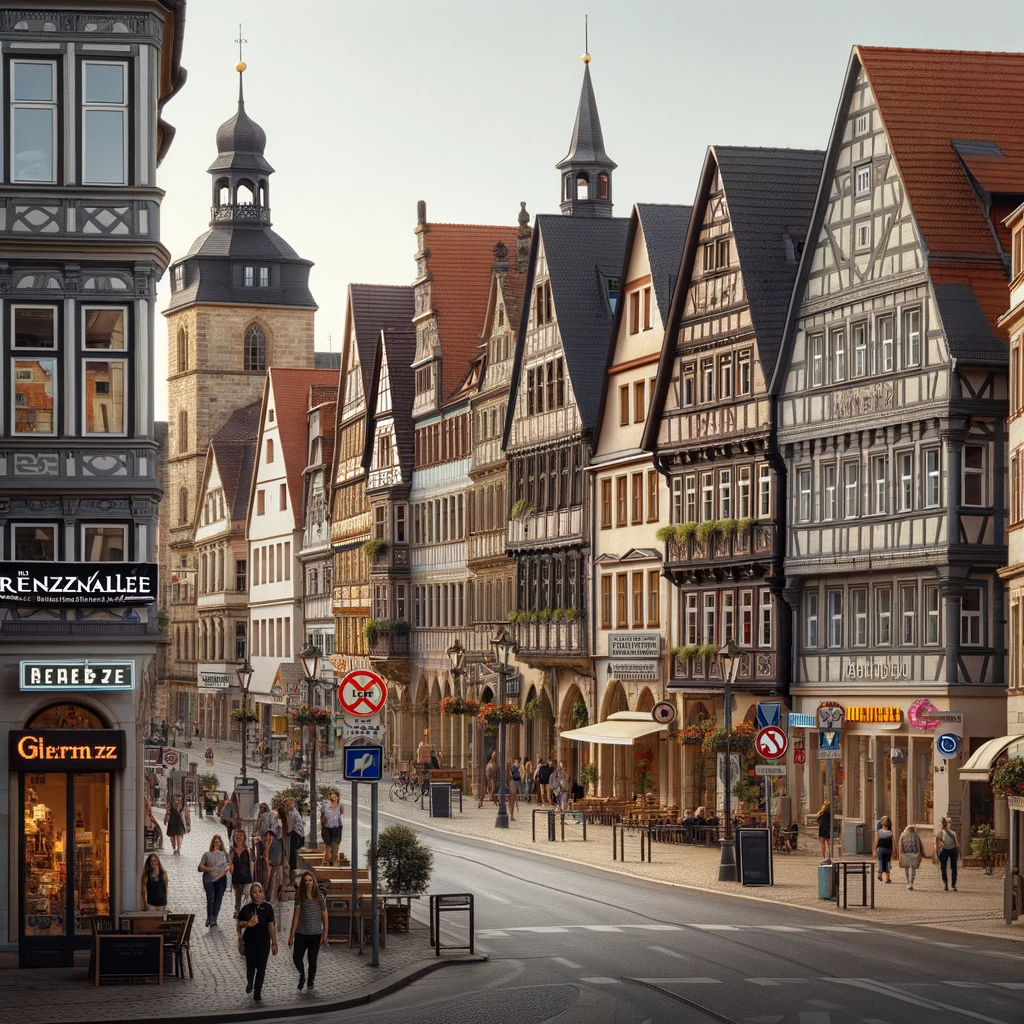 Grenzburgs Straßen und Plätze sind ein Mosaik aus Geschichte und Moderne, wobei jede Gasse und jeder Winkel seine eigene Geschichte erzählt. Die Grenzallee, eine der Hauptstraßen der Stadt, erstreckt sich vom nördlichen Stadttor bis hin zum Marktplatz. Gesäumt von einer Mischung aus mittelalterlichen Fachwerkhäusern und modernen Geschäftsgebäuden, bildet sie das pulsierende Herz der Stadt. An der Ecke zur Mühlenstraße steht das alte Stadttor, ein Überbleibsel der mittelalterlichen Befestigungsanlagen, das heute als kleines Museum dient.