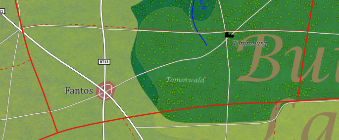 Fantos, ein malerisches Dorf im Kreis Grenzburg, liegt westlich des Buthanischen Landrückens und des dichten Tommwaldes. Umgeben von weiten Feldern, vereint Fantos die Schönheit der ländlichen Landschaft mit einer reichen Geschichte und zukunftsorientierter Landwirtschaft. Fantos, eingebettet in eine sanft gewellte Landschaft, ist geprägt von ausgedehnten Getreidefeldern und grünen Gemüsegärten. Die Nähe zum Tommwald verleiht dem Dorf eine besondere Atmosphäre der Ruhe und Abgeschiedenheit. Die Dorfstraße, eine von Bäumen gesäumte Allee, führt direkt zum Herzen des Dorfes, wo sich das Leben der Gemeinschaft abspielt.