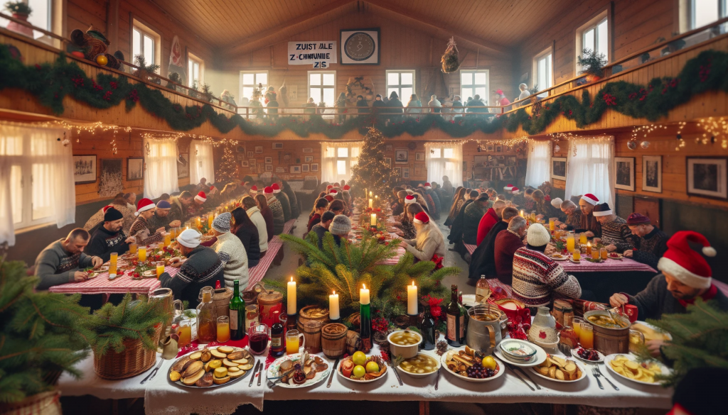 Nach einem ausgiebigen Tag auf dem Kolichpfad kehrte die Gruppe nach Dora zurück, wo die eigentliche Feier begann. Im Gemeindehaus, das festlich geschmückt war, warteten bereits Glühwein, Grog und Punsch sowie ein reichhaltiges Festessen. Die Tische waren mit Tannenzweigen, Kerzen und kleinen handgefertigten Dekorationen geschmückt, die die Mitarbeiter*innen in den Wochen zuvor gebastelt hatten. Die musikalischen Darbietungen der Geschäftsleitung waren ein besonderes Highlight. Olivia Wang eröffnete den Abend mit einer herzlichen Rede und einem Toast auf das Team und die gemeinsamen Erfolge des Jahres. Anschließend spielte eine kleine Band aus Mitarbeitern traditionelle Weihnachtslieder und einige moderne Hits, während andere Kollegen spontan Sketche und Gedichte vortrugen.