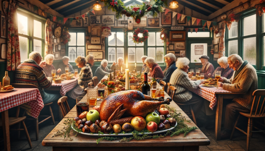 Das Festmahl wird im Kreise ihrer Familie und Freunde genossen, eine bunte Mischung aus Stammgästen, Verwandten und gelegentlichen Besuchern, die alle durch Emmas Gastfreundschaft verbunden sind. Die Tische werden zusammengeschoben, und jeder bringt etwas mit, sei es ein selbstgemachter Kartoffelsalat, eingelegtes Gemüse oder eine Flasche des lokalen Weins. Die Atmosphäre im Kiosk, der abends zur Dorfkneipe wird, ist erfüllt von Lachen, Geschichten und Liedern. Emma, die im Zentrum des Geschehens steht, sorgt dafür, dass jeder ein volles Glas hat und sich am Essen erfreuen kann. Die Geschichten, die erzählt werden, reichen von alten Dorflegenden bis hin zu den kleinen Ereignissen des vergangenen Jahres, und die Lieder, die gesungen werden, sind oft die alten Weihnachtslieder, die jeder kennt und liebt. Der Kiosk selbst, tagsüber ein Treffpunkt für Einkäufe und Austausch, verwandelt sich abends in einen Ort der Gemütlichkeit und des Feierns. Mit seiner einfachen, aber herzlichen Einrichtung – den Holztischen, den bunt gemusterten Tischdecken und den handgefertigten Dekorationen, die zu Weihnachten immer etwas üppiger ausfallen – wird er zu einem Symbol der Dorfgemeinschaft. Hier kommen die Dorfbewohner zusammen, um das Jahr Revue passieren zu lassen, sich gegenseitig zu unterstützen und gemeinsam zu feiern.