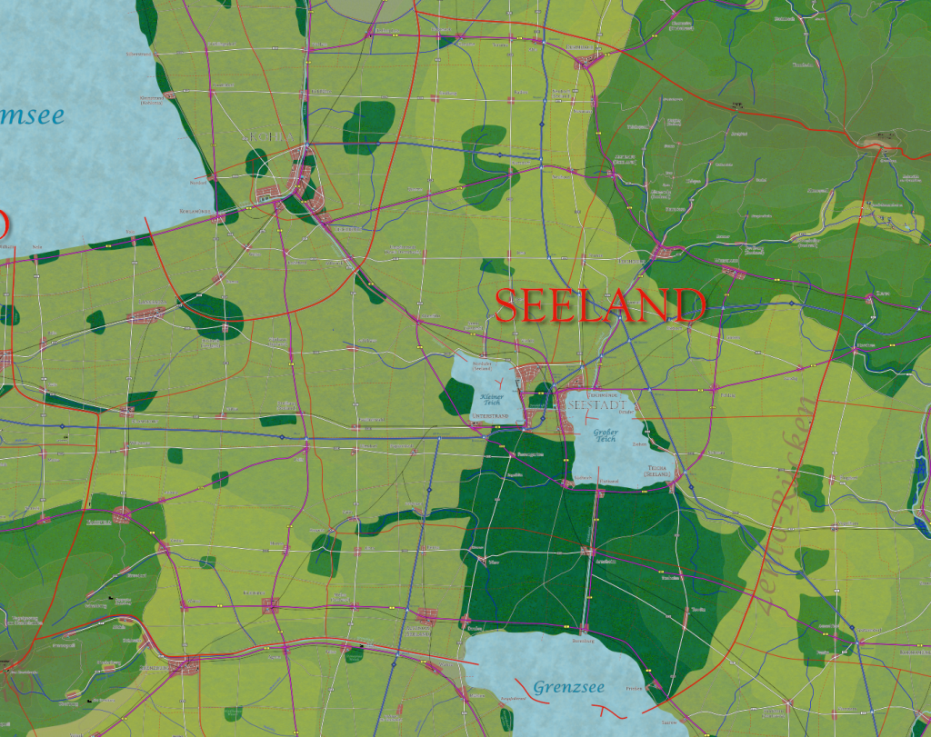 Seestadt, die heutige Hauptstadt des Seelandes, liegt einzigartig zwischen Großem und Kleinem Teich, die durch den Teichfluss verbunden sind. Mit rund 66.500 Einwohnern ist sie nicht nur Verwaltungssitz, sondern auch kulturelles und wirtschaftliches Herz der Region. Ihre Wurzeln reichen zurück bis ins Mittelalter: Nachdem das alte Seeland mit seiner Hauptstadt Kohla unterging, wurde im 15. Jahrhundert Seestadt zur neuen Metropole – geschützt durch Wasser, ideal gelegen an den Handelsrouten.
