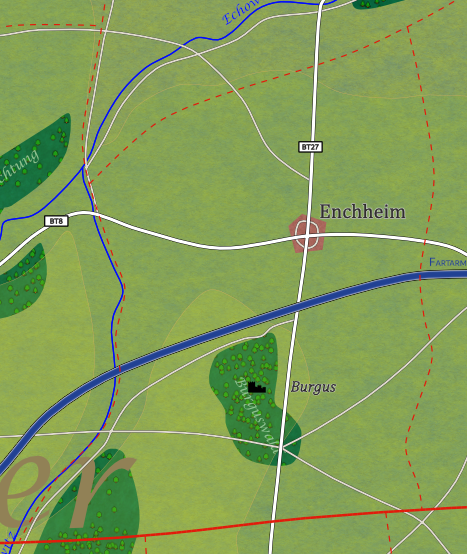 Zur Gemeinde gehört der Flecken Burgus (Pop. 7). Die Burgus-Burgruine, südlich von Enchheim gelegen, ist ein beeindruckendes Relikt aus dem 12. Jahrhundert. Einst eine wichtige Verteidigungsanlage gegen Wikingerangriffe, wurde sie im 14. Jahrhundert von Raubrittern heimgesucht und schließlich von einem Verbündetenheer erobert. Heute sind die Ruinen von Natur umgeben und ein beliebtes Touristenziel. Der Landgasthof Zum Alten Wächter nebenan bietet lokale Küche und historische Informationen. Burgus ist auch Schauplatz kultureller Veranstaltungen, die die Vergangenheit zum Leben erwecken und die zeitlose Schönheit der Region zeigen. Ein Ort, der Geschichte und Ruhe vereint.