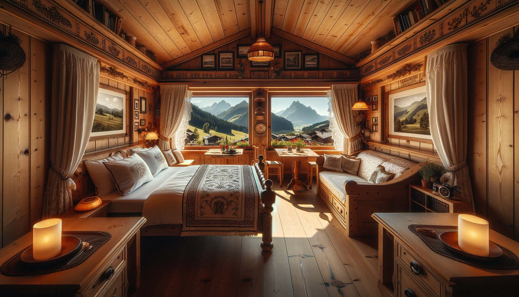 Das Müllerhaus verfügt über fünf individuell gestaltete Gästezimmer, jedes mit einem einzigartigen Flair. Die Zimmer, benannt nach den umliegenden Bergen des Sturmgebirges, bieten einen atemberaubenden Blick auf die malerische Landschaft. Die Einrichtung jedes Zimmers spiegelt die lokale Handwerkskunst wider, mit handgefertigten Möbeln aus der Tischlerei von Johann Müller, einem Nachfahren der ursprünglichen Müllerfamilie. Die Bettwäsche, sorgfältig ausgewählt von Hulda Schmitt, ist aus feinster Buthanischer Baumwolle, gewebt in der kleinen Weberei am Dorfrand.