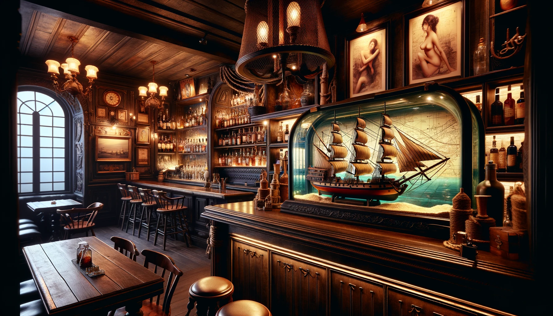 Ein besonderes Merkmal der „Fischerstube“ ist das alte Flaschenschiff hinter der Theke, ein Erbstück, das Quentin von einem alten Seemann erhalten hat. Es ranken sich Gerüchte, dass sich die Wellen und die Segel des Schiffs manchmal bewegen, als ob es auf den Meeren des Mare Internum segeln würde. Dieses mystische Element fügt der Atmosphäre der Gaststätte eine faszinierende Note hinzu und zieht Neugierige sowie Stammgäste gleichermaßen an.