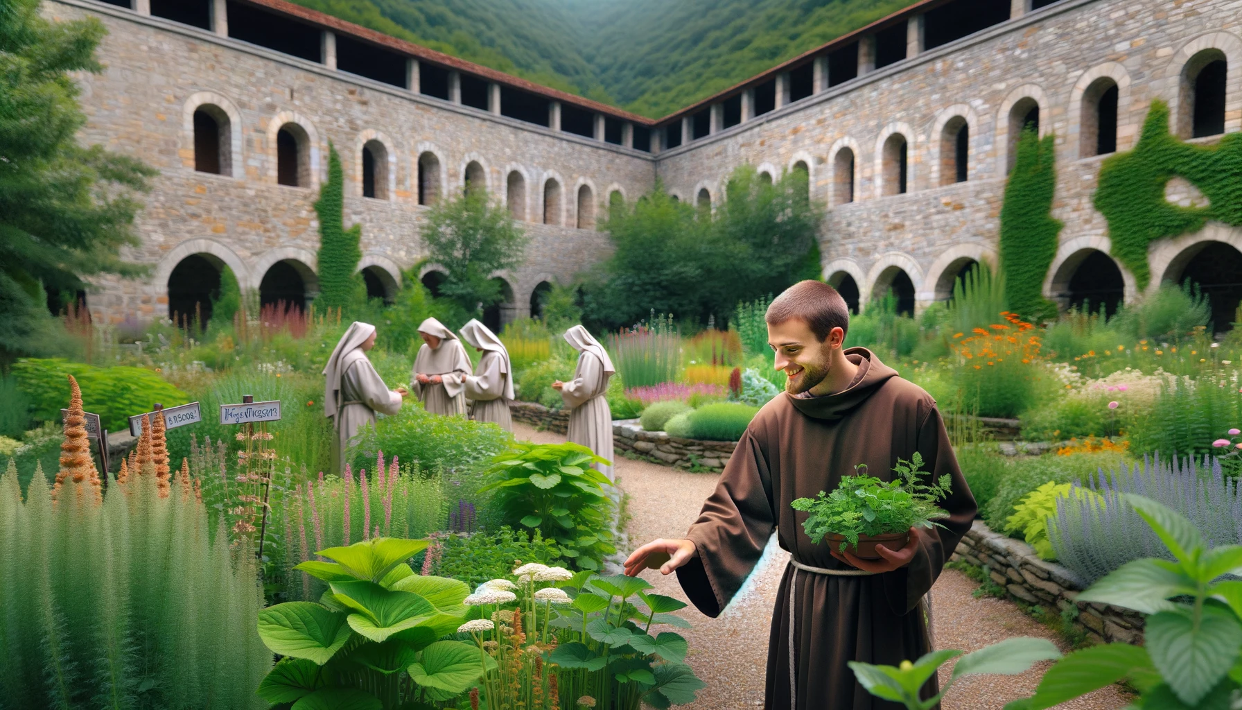 Bruder Lukas im Kräutergarten