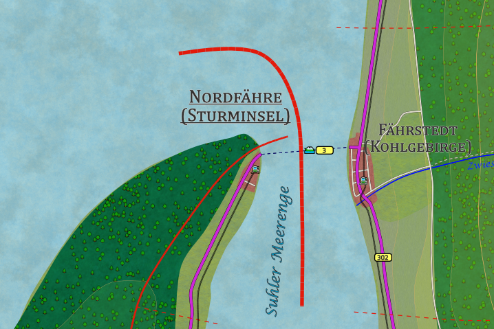 Nordfähre, die kleine Kreisstadt im Landkreis Sturminsel Nordost, ist ein bedeutender Knotenpunkt und zugleich ein beschaulicher Ort mit maritimem Flair. Die Stadt liegt direkt an der Suhler Meerenge, die mit einer Breite von 3,5 Kilometern das Festland von Kohlonia trennt. Die Meerenge ist ein vielbefahrener Wasserweg, auf dem nicht nur die große Autofähre zwischen Nordfähre und der Stadt Fährstedt am Kohlgebirge pendelt, sondern auch zahlreiche Fischerboote und Frachtschiffe unterwegs sind. Das Meer kann an ruhigen Tagen sanft in der Sonne glitzern, doch plötzliche Wetterumschwünge können die Passage herausfordernd machen. Besonders am frühen Morgen, wenn die Sonne hinter dem Kohlgebirge aufgeht und die Silhouetten der Schiffe auf dem Wasser sichtbar werden, hat die Szenerie einen besonderen Reiz.