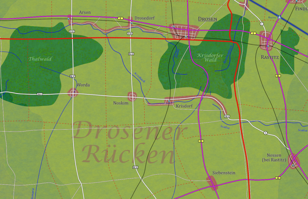 Ch.: B55 (S: Siebenstein 12km, N: Drosen 7km); BL6 (W: Noskim, SO: Nossen)