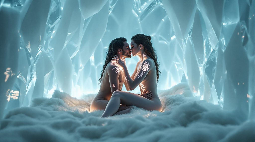 Dort begann ein Spiel, so grausam wie berauschend. Ihre Küsse ließen seine Lippen gefrieren, doch hinterließen sie Spuren von glühender Sehnsucht. Ihre Hände zeichneten Muster auf seiner Haut, und dort, wo sie ihn berührte, erblühten eisige Rosen, die schmerzhaft brannten und zugleich Lust weckten.