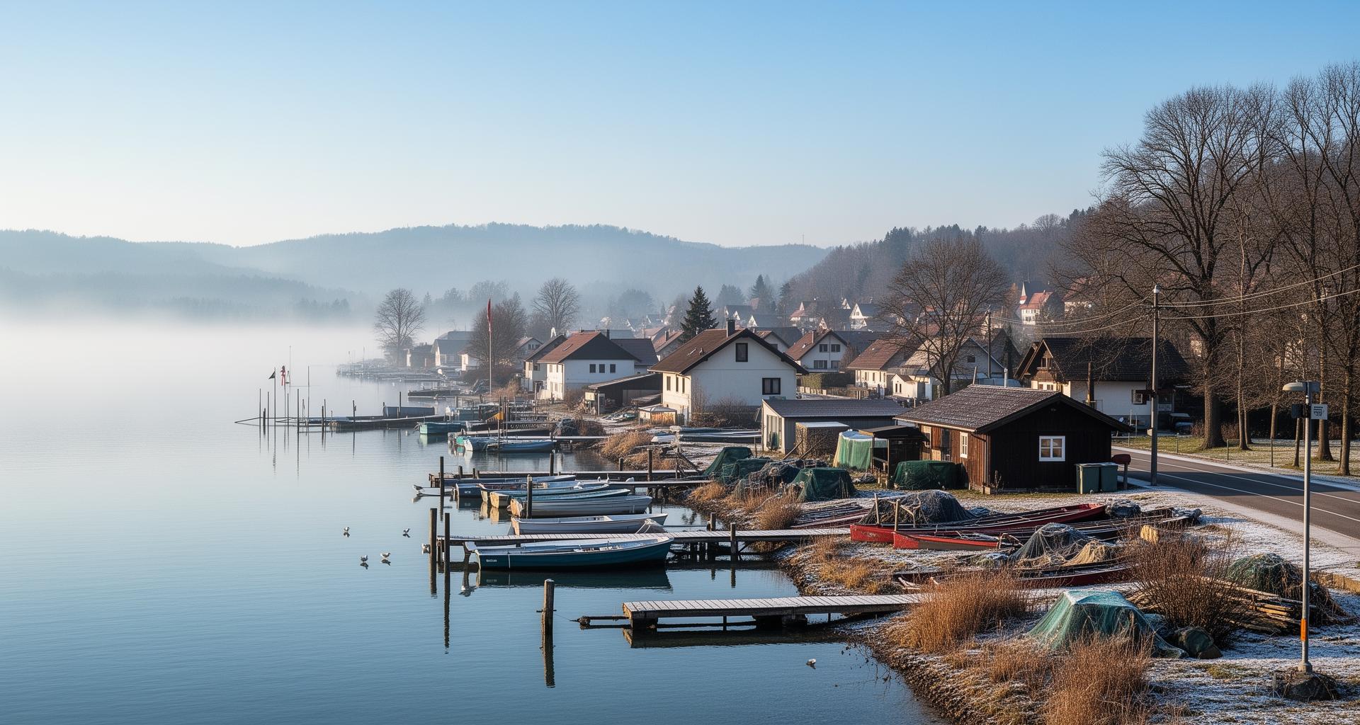 Neimlis liegt am Südufer des Grenzsees. Die Häuser stehen nicht dicht gedrängt, sondern folgen dem Ufer in einer leichten Linie; dazwischen liegen Bootsgärten, Stege, Lagerplätze für Ruder und Netze. Der See bestimmt das Klima im Ort: Im Frühjahr bleibt es hier oft länger kühl, im Herbst liegt morgens Nebel über dem Wasser, der sich erst hebt, wenn der Wind vom offenen Becken her einsetzt. Die Seelandbahn hält stündlich, der kleine Bahnhof liegt etwas abseits hinter einer Baumreihe. Wer aussteigt, hört zuerst Möwen und das Knacken der Flaggenmasten, bevor der Ort sichtbar wird. Über die Straße kommen am Wochenende viele Tagesgäste, unter der Woche bleibt es ruhiger.
