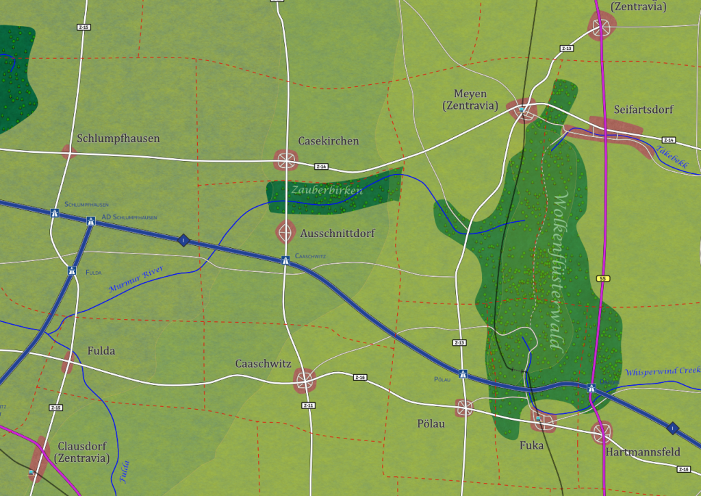 Von der Kirche aus lohnt ein Spaziergang hinunter zum Murmur River. Entlang des Ufers, das hier von Weiden gesäumt wird, hat die Dorfjugend eine kleine Lesehütte errichtet. Einfach gezimmert, mit einem Pultdach und einem Regal, ist sie ein Ort der stillen Kommunikation. Hier liegen gedruckte Wochenübersichten aus – meist die Ausdrucke der Medienbeobachtung, die sonst nur in den Büros der Auftraggeber landen. Die Dorfbewohner können hier blättern, was in der Welt und vor allem in Zentravia passiert ist. Oft finden sich handschriftliche Randnotizen: ein Kommentar zu einem Artikel über die Kreispolitik, eine Unterstreichung einer Meldung aus Drosen oder ein kleiner Gruß an den Nachbarn. Die Hütte ist so etwas wie die soziale Plattform des Dorfes, ein analoges Facebook unter freiem Himmel.