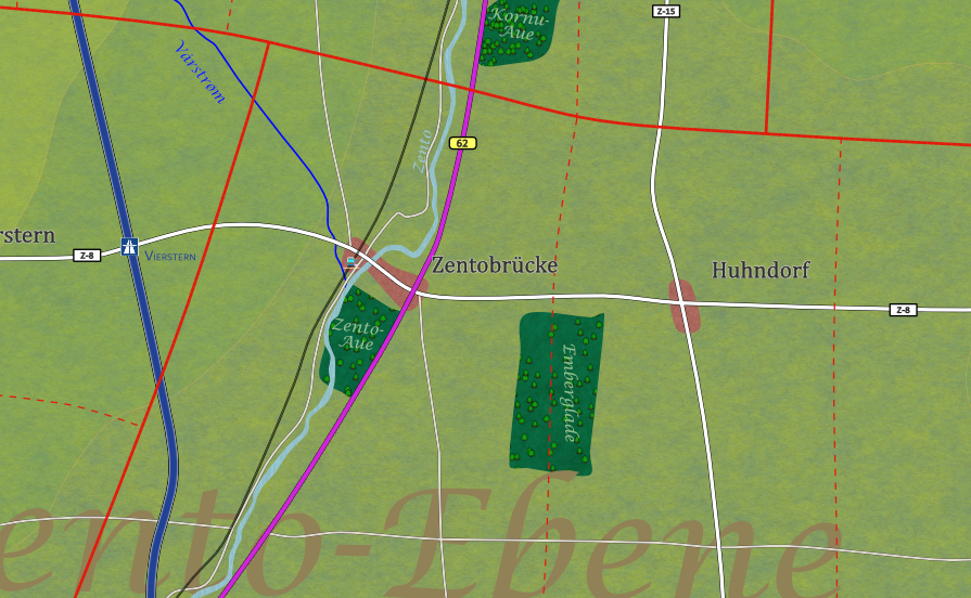 Straße: B62 (S: Zentro 19km, N: Kornumünde 10km); Landesstraße Z-4 (W: Vierstern 11km, O: Huhndorf 7km)