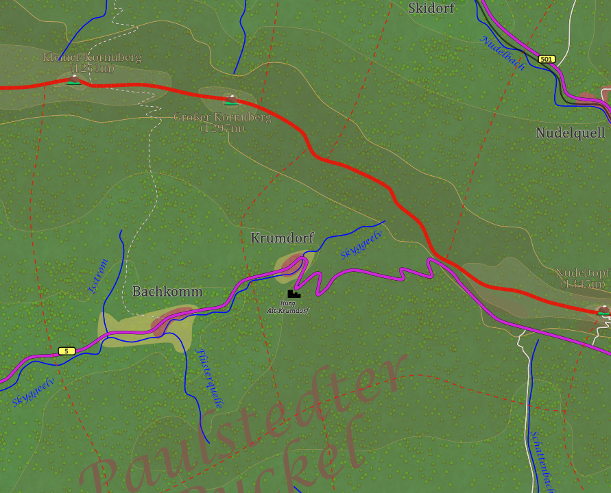 Die B5 ist die einzige Straßenverbindung, und selbst sie ist mehr eine gewundene Landstraße. Wer mit dem Auto anreist, kommt über Gebirgshof (14 km südwestlich) oder aus dem kleinen Krumdorf (5 km östlich). Die 47 Einwohner verteilen sich auf die Schänke, die Kapelle und drei weitere Wohnhäuser. Zwei der Häuser gehören den Familien Hansen und Berger, die seit Generationen hier oben leben und eine kleine Landwirtschaft mit einigen Ziegen und Hühnern betreiben. Das dritte Haus ist die kleine, aber feine Kapelle St. Michael, ein schlichter, weiß gekalkter Bau mit einem kleinen Dachreiter. Zweimal im Monat kommt Pfarrer Magnus Uhlmann aus Gebirgshof hier herauf, um einen Gottesdienst zu halten. Die Gemeinde ist klein, aber die Zusammenkünfte in der Kapelle sind wichtige gesellschaftliche Ereignisse. Der Alltag ist einfach. Für die Bewohner von Bachkomm ist die Postagentur im Nachbarort Krumdorf die nächste Anlaufstelle, um Pakete abzuholen oder Briefe aufzugeben. Einmal pro Woche kommt der mobile Bäcker, Leopoldt Zelenka, aus Paulstedt mit seinem grünen Transporter vorgefahren, ein Ereignis, das die gesamte Dorfgemeinschaft auf den Plan ruft.